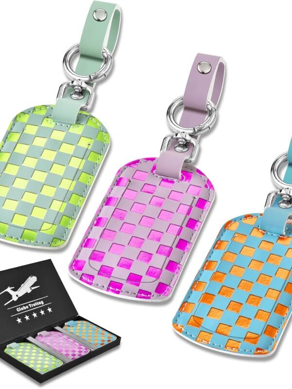 Luggage Tags for Suitcases Travel Accessories: Leather Luggage Tag 3 Pack TSA Approved Airplane Travel Essentials for Women, Bag Tags for Luggage Long Flight Must Haves Travels Gift Airport Essentials